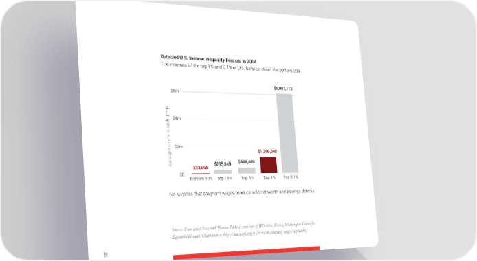 Outsized U.S. Income Inequality Persists in 2014 The incomes of the top 1% and 0.1% of U.S. families dwarf the bottom 99% $6,087,113 $6m p u o r g $4m h c a e n i e m o c$2m n i $1,260,508 e g a r e $295,845 $448,489 Av $33,068 $0 Bottom 90% Top 10% Top 5% Top 1% Top 0.1% No surprise that stagnant wages produce wild net worth and savings deficits. Source: Emmanuel Saez and !omas Pikkety’s analysis of IRS data. ©2015 Washington Center for Equitable Growth. Chart source: http://www.epi.org/publication/charting-wage-stagnation/ 24