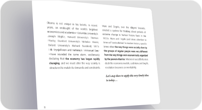 Obama is not unique in his beliefs. In recent Marx and Engels, ever the diligent futurists, years, an onslaught of the world’s brightest created a system for thinking about periods of economists and academics—Columbia University’s extreme change in human history back in the Joseph Stiglitz; Harvard University’s Thomas 1800s. Marx and Engels paid close attention to Piketty; Stanford University’s Nicholas Bloom; times of “contradiction” in modern history, specific Oxford University’s Richard Susskind; MIT’s times when the way things were socially done by Erik Brynjolfsson and Berkeley’s Emmanuel Saez the groups of regular people were very different —have sounded the same alarm, vociferously from the way things were economically organized declaring that the economy has begun rapidly by the powers-that-be. Whenever social behaviors changing, and we must alter the way society is clash the economic models, said Marx and Engels, structured to match its demands and constraints. revolution becomes an inevitability. Let’s stop there to apply this very timely idea to today… 10