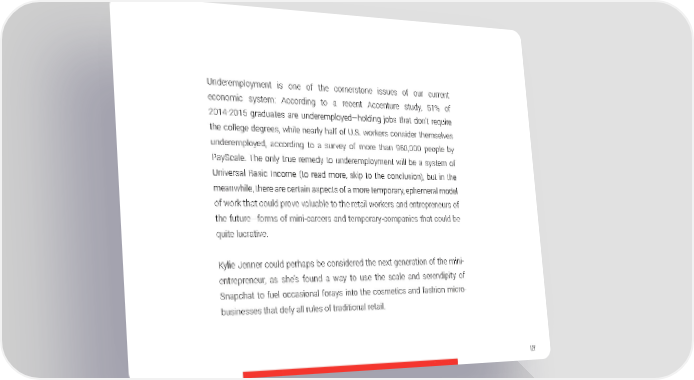 Underemployment is one of the cornerstone issues of our current economic system: According to a recent Accenture study, 51% of 2014-2015 graduates are underemployed—holding jobs that don’t require the college degrees, while nearly half of U.S. workers consider themselves underemployed, according to a survey of more than 960,000 people by PayScale. The only true remedy to underemployment will be a system of Universal Basic Income (to read more, skip to the conclusion), but in the meanwhile, there are certain aspects of a more temporary, ephemeral model of work that could prove valuable to the retail workers and entrepreneurs of the future—forms of mini-careers and temporary-companies that could be quite lucrative. Kylie Jenner could perhaps be considered the next generation of the mini- entrepreneur, as she’s found a way to use the scale and serendipity of Snapchat to fuel occasional forays into the cosmetics and fashion micro- businesses that defy all rules of traditional retail. 127