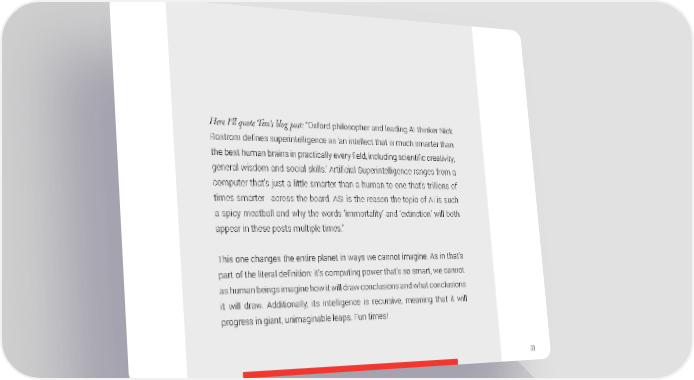 Here I’ll quote Tim’s blog post: “Oxford philosopher and leading AI thinker Nick Bostrom defines superintelligence as ‘an intellect that is much smarter than the best human brains in practically every field, including scientific creativity, general wisdom and social skills.’ Artificial Superintelligence ranges from a computer that’s just a little smarter than a human to one that’s trillions of times smarter—across the board. ASI is the reason the topic of AI is such a spicy meatball and why the words ‘immortality’ and ‘extinction’ will both appear in these posts multiple times.” This one changes the entire planet in ways we cannot imagine. As in that’s part of the literal definition: it’s computing power that’s so smart, we cannot as human beings imagine how it will draw conclusions and what conclusions it will draw. Additionally, its intelligence is recursive, meaning that it will progress in giant, unimaginable leaps. Fun times! 99