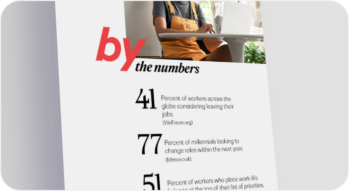 by the numbers Percent of workers across the 41 globe considering leaving their jobs. (WeForum.org) Percent of millennials looking to 77change roles within the next year. (Metro.co.uk) 51 Percent of workers who place work-life balance at the top of their list of priorities. Career advancement opportunities were second, at 43%. (IBM Business Value Report) 18 BUSINESS & GROWTH TRENDS 2022 OGILVY GROWTH & INNOVATION