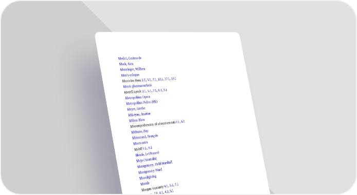 Medici, Cosimo de Meek, Sam Menninger, William Men’s cologne Mercedes-Benz 2.1, 3.1, 7.1, 12.1, 17.1, 19.1 Merck pharmaceuticals Merrill Lynch 2.1, 5.1, 7.1, 8.1, 9.1 Metropolitan Opera Metropolitan Police (UK) Meyer, Grethe Mikoyan, Anastas Milton Biow Miscomprehension of advertisements 7.1, 8.1 Mithune, Ray Mitterrand, François Mnemonics Mobil 9.1, 9.2 Monde, Le (France) Mojo (Australia) Montgomery, Field Marshall Montgomery Ward Moonlighting Morals Morgan Guaranty 4.1, 5.1, 7.1 Morgan, J.P. 4.1, 4.2, 5.1 Morgens, Howard Morril Moscoso, Ted 4.1, 6.1 Moscow Olympic Games coins 12.1, 12.2 Moses, Bob Motion picture industry 3.1, 15.1, 15.2 Multinational advertising 5.1, 17.1 Murphy, Bev Music 8.1, 8.2, 8.3, 14.1 N Nader, Ralph