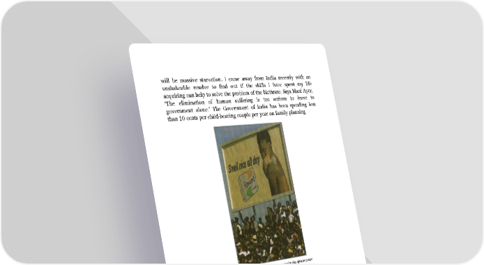 will be massive starvation. I came away from India recently with an unshakeable resolve to find out if the skills I have spent my life acquiring can help to solve the problem of the birthrate. Says Mani Ayer, ‘The elimination of human suffering is too serious to leave to government alone.’ The Government of India has been spending less than 10 cents per child-bearing couple per year on family planning. A straight-from-the-shoulder benefit is promised in this African poster.