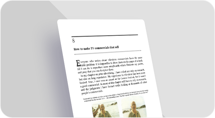 8 How to make TV commercials that sell veryone who writes about television commercials faces the same E insoluble problem: it is impossible to show them on the pages of a book. All I can do is reproduce some storyboards which illustrate my points, and pray that you can decipher them. In my chapter on print advertising, I have relied not only on research, but also on long experience. My experience in television has been more limited. True, I once won an award at the Cannes Festival, but it wasn’t a good commercial. So most of this chapter will have to rely on research, and the judgments I have formed while looking at thousands of other people’s commercials. Testimonials by celebrities are below average in their ability to change brand preference, but American Express has been running commercials like this one since 1975 — with outstanding success. They have a special element of mystery: ‘Do you know me?’