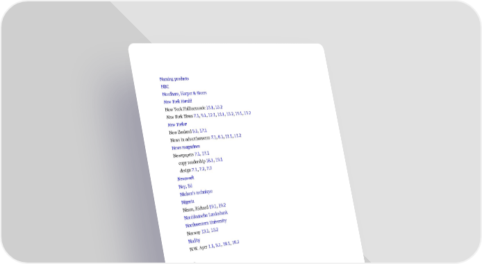 Naming products NBC Needham, Harper & Steers New York Herald New York Philharmonic 13.1, 13.2 New York Times 7.1, 9.1, 12.1, 13.1, 13.2, 19.1, 19.2 New Yorker New Zealand 5.1, 17.1 News in advertisements 7.1, 8.1, 11.1, 11.2 News magazines Newspapers 7.1, 17.1 copy readership 15.1, 19.1 design 7.1, 7.2, 7.3 Newsweek Ney, Ed Nielsen’s technique Nigeria Nixon, Richard 19.1, 19.2 Norddeutsche Landesbank Northwestern University Norway 13.1, 13.2 Nudity N.W. Ayer 1.1, 5.1, 18.1, 18.2 O Ogilvy, Francis 2.1, 7.1, 12.1, 15.1 Ogilvy & Mather 4.1, 8.1, 18.1 Australia Bangkok 17.1, 17.2 Bombay Canada clients 6.1, 12.1, 19.1 early days 1.1, 4.1, 4.2, 5.1, 5.2, 7.1, 15.1 Frankfurt 5.1, 17.1, 17.2 good cause advertising 13.1, 13.2, 13.3 house advertisements 5.1, 12.1, 12.2, 17.1 long copy