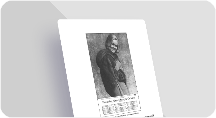 More image-building for Sears. Who would expect Sears to sell mink? Notice that all these bromides are interchangeable – any company could use any of them. They generally appear at the bottom of advertisements, where nobody reads them, and, by cluttering up the layout, they reduce readership of the copy. Many corporate campaigns fail because they are under-funded. Companies which spend millions on advertising their brand names are curiously stingy when it comes to their corporate campaigns. The most sensible way to set the budget is to ‘analyse the task.’ How much will it cost to achieve a specific goal among a specific audience? Another common mistake is to confine the campaign to magazines and
