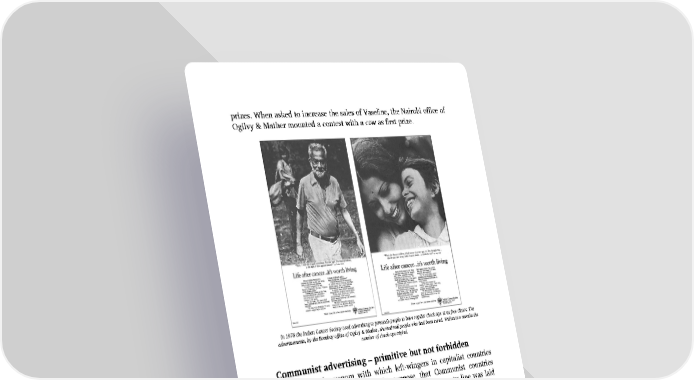 prizes. When asked to increase the sales of Vaseline, the Nairobi office of Ogilvy & Mather mounted a contest with a cow as first prize. In 1978 the Indian Cancer Society used advertising to persuade people to have regular check-ups at its free clinics. The advertisements, by the Bombay office of Ogilvy & Mather, showed real people who had been cured. Within two months the number of check-ups tripled. Communist advertising – primitive but not forbidden Considering the venom with which left-wingers in capitalist countries denounce advertising, you might suppose that Communist countries would eschew this capitalist tool. Not so. The Soviet party line was laid down long ago by Anastas Mikoyan, the old Bolshevik who was in charge of foreign and domestic trade under Stalin and Krushchev: ‘The task of our Soviet advertising is to give people exact information about the goods that are on sale, to help to create new demands, to cultivate new tastes and requirements, to promote the sales of new kinds of goods and to explain their uses to the consumer.’ I could not have said it better myself However, apart from campaigns for