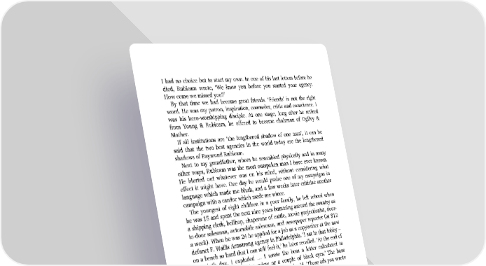 I had no choice but to start my own. In one of his last letters before he died, Rubicam wrote, ‘We knew you before you started your agency. How come we missed you?’ By that time we had become great friends. ‘Friends’ is not the right word. He was my patron, inspiration, counselor, critic and conscience. I was his hero-worshipping disciple. At one stage, long after he retired from Young & Rubicam, he offered to become chairman of Ogilvy & Mather. If all institutions are ‘the lengthened shadow of one man’, it can be said that the two best agencies in the world today are the lengthened shadows of Raymond Rubicam. Next to my grandfather, whom he resembled physically and in many other ways, Rubicam was the most outspoken man I have ever known. He blurted out whatever was on his mind, without considering what effect it might have. One day he would praise one of my campaigns in language which made me blush, and a few weeks later criticize another campaign with a candor which made me wince. The youngest of eight children in a poor family, he left school when he was 15 and spent the next nine years bumming around the country as a shipping clerk, bellhop, chaperone of cattle, movie projectionist, door- to-door salesman, automobile salesman, and newspaper reporter (at $12 a week). When he was 24 he applied for a job as a copywriter at the now defunct F. Wallis Armstrong agency in Philadelphia. ‘I sat in that lobby – on a bench so hard that I can still feel it,’ he later recalled. ‘At the end of the ninth day, I exploded … I wrote the boss a letter calculated to produce an immediate interview or a couple of black eyes.’ The boss stormed into the lobby, waving the letter, and said, ‘Those ads you wrote didn’t amount to much, but this letter has some stuff in it.’ He stayed with Armstrong for three years, but did not enjoy it. ‘Armstrong said that a copywriter was a necessary evil, but an art director was just a goddamned luxury. He lived to outfox everybody.’ In 1919 Rubicam moved to N.W. Ayer, then the largest agency in the country. There he wrote campaigns which have been included in every anthology of great advertisements, including ‘The Instrument of the Immortals’ for Steinway and ‘The Priceless Ingredient’ for Squibb. Then, after four years with Ayer, he teamed up with an account executive called John Orr Young to start Young & Rubicam, on a shoe-string. Their