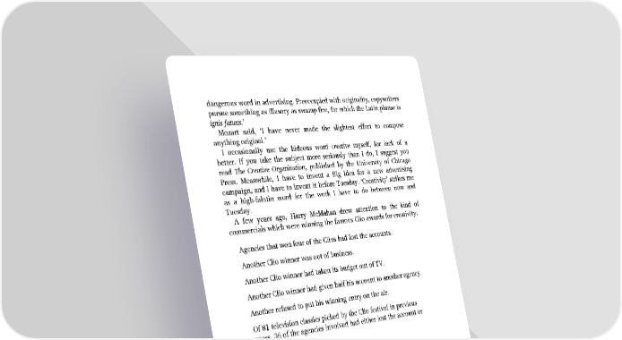 dangerous word in advertising. Preoccupied with originality, copywriters pursue something as illusory as swamp fire, for which the Latin phrase is ignis fatuus.’ Mozart said, ‘I have never made the slightest effort to compose anything original.’ I occasionally use the hideous word creative myself, for lack of a better. If you take the subject more seriously than I do, I suggest you read The Creative Organization, published by the University of Chicago Press. Meanwhile, I have to invent a Big Idea for a new advertising campaign, and I have to invent it before Tuesday. ‘Creativity’ strikes me as a high-falutin word for the work I have to do between now and Tuesday. A few years ago, Harry McMahan drew attention to the kind of commercials which were winning the famous Clio awards for creativity: Agencies that won four of the Clios had lost the accounts. Another Clio winner was out of business. Another Clio winner had taken its budget out of TV. Another Clio winner had given half his account to another agency. Another refused to put his winning entry on the air. Of 81 television classics picked by the Clio festival in previous years, 36 of the agencies involved had either lost the account or gone out of business.