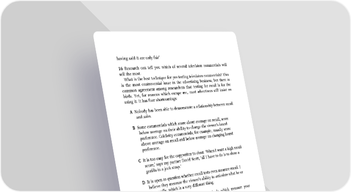 having said it are only fair’ 16 Research can tell you which of several television commercials will sell the most. What is the best technique for pre-testing television commercials? This is the most controversial issue in the advertising business, but there is common agreement among researchers that testing for recall is for the birds. Yet, for reasons which escape me, most advertisers still insist on using it. It has four shortcomings: A Nobody has been able to demonstrate a relationship between recall and sales. B Some commercials which score about average on recall, score below average on their ability to change the viewer’s brand preference. Celebrity commercials, for example, usually score above average on recall and below average on changing brand preference. C It is too easy for the copywriter to cheat. ‘When I want a high recall score,’ says my partner David Scott, ‘all I have to do is to show a gorilla in a jock strap.’ D It is open to question whether recall tests even measure recall. I believe they measure the viewer’s ability to articulate what he or she recalls, which is a very different thing. For all these reasons, I prefer testing methods which measure your commercial’s ability to change brand preferences. Research can measure the wear-out of your advertising. For five years, the theme of Shell’s commercials was mileage, and tracking studies recorded increasingly favorable attitudes to the product. When attitudes finally stopped improving, the advertising was changed from demonstrations of mileage to consumer testimonials, and the upward trend was resumed. 17 Research can tell you how many people read your advertisements, and how many remember them.