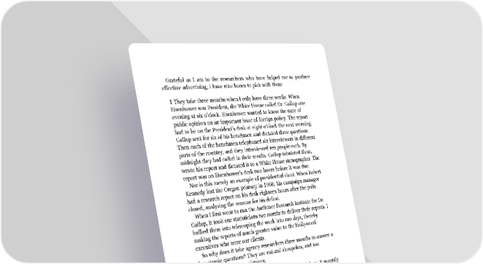 Grateful as I am to the researchers who have helped me to produce effective advertising, I have nine bones to pick with them: 1 They take three months when I only have three weeks. When Eisenhower was President, the White House called Dr. Gallup one evening at six o’clock. Eisenhower wanted to know the state of public opinion on an important issue of foreign policy. The report had to be on the President’s desk at eight o’clock the next morning. Gallup sent for six of his henchmen and dictated three questions. Then each of the henchmen telephoned six interviewers in different parts of the country, and they interviewed ten people each. By midnight they had called in their results. Gallup tabulated them, wrote his report and dictated it to a White House stenographer. The report was on Eisenhower’s desk two hours before it was due. Nor is this merely an example of presidential clout. When Robert Kennedy lost the Oregon primary in 1968, his campaign manager had a research report on his desk eighteen hours after the polls closed, analysing the reasons for his defeat. When I first went to run the Audience Research Institute for Dr. Gallup, it took our statisticians two months to deliver their reports. I bullied them into telescoping the work into two days, thereby making the reports of much greater value to the Hollywood executives who were our clients. So why does it take agency researchers three months to answer a few simple questions? They are natural slowpokes, and too frightened of making mistakes. 2 They cannot agree among themselves on methodology. It recently took the Research Directors of the 21 biggest agencies two years to reach agreement on the principles which should govern copy-testing. Now they have started to debate methodology. Five years? 3 It is in research departments that you find the eggheads of the agency business. Too many of them are more interested in sociology and economics than advertising. They concentrate their attention on subjects which are only peripherally related to advertising. 4 They have little or no system for retrieving research which has