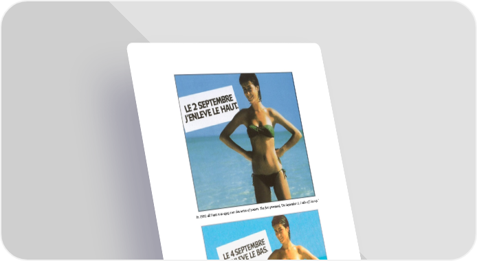 In 1981 all Paris was agog over this series of posters. The first promised, ‘On September 2, I take off the top.’ The second promised, ‘On September 4, I take off the bottom.’ Would she keep that promise too?