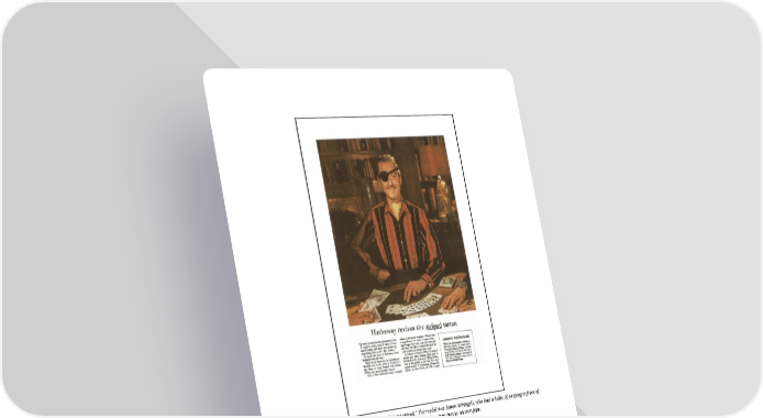 The eyepatch injects the magic element of ‘story appeal.’ The model was Baron Wrangell, who had a habit of swaying in front of the camera, so that we had to strap him to an iron pipe. 11 My brother Francis once asked a Cockney editor of the Daily Mirror (London) what kind of photographs most interested his readers. He answered, ‘Babies with an ’eart-throb, animals with an ’eart-throb, and what you might call sex.’ This is still true today. 12 When I worked for Dr. Gallup, I noticed that moviegoers were more interested in actors of their own sex than actors of the opposite sex. People want to see movie stars with whom they can identify. The same force is at work in advertisements. When you use a photograph of a woman, men ignore your advertisement.