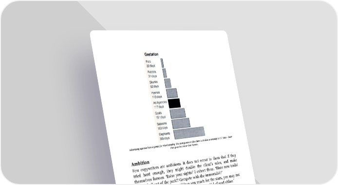 Advertising agencies have a genius for wheel-spinning. The average time it takes them to produce a campaign is 117 days – faster than goats but slower than hyenas. Ambition Few copywriters are ambitious. It does not occur to them that if they tried hard enough, they might double the client’s sales, and make themselves famous. ‘Raise your sights!’ I exhort them. ‘Blaze new trails! Hit the ball out of the park!! Compete with the immortals!!!’ Leo Burnett said it better, ‘When you reach for the stars, you may not quite get one, but you won’t come up with a handful of mud either.’ Pursuit of knowledge I once asked Sir Hugh Rigby, Surgeon to King George V, ‘What makes a great surgeon?’ Sir Hugh replied, ‘There isn’t much to choose between surgeons in manual dexterity. What distinguishes the great surgeon is that he knows more than other surgeons.’ It is the same with advertising agents. The good ones know more. I asked an indifferent copywriter what books he had read about advertising. He told me that he had not read any; he preferred to rely on