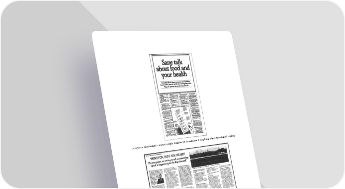 A corporate advertisement in a series by Ogilvy & Mather for General Foods. A complicated subject expounded with simplicity. ARMCO used corporate advertising to tell the people in Houston what they were doing about pollution in the ship channel.