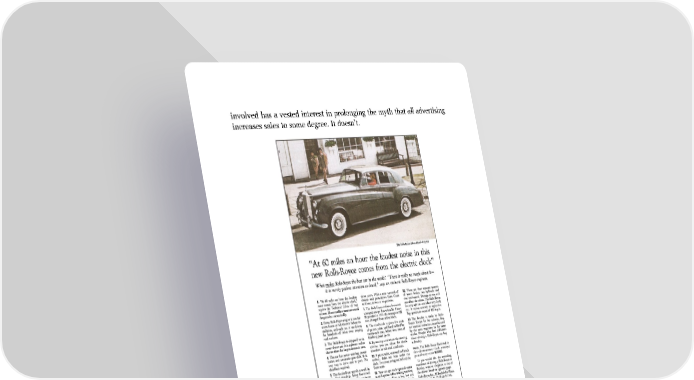involved has a vested interest in prolonging the myth that all advertising increases sales to some degree. It doesn’t. Before I wrote this – the most famous of all automobile ads – I did my homework. It ran only in two newspapers and two magazines, at a cost of $25,000. The following year, Ford based their multi-million dollar campaign on the claim that their car was even quieter than a Rolls. Click here for text. Do your homework You don’t stand a tinker’s chance of producing successful advertising unless you start by doing your homework. I have always found this extremely tedious, but there is no substitute for it. First, study the product you are going to advertise. The more you