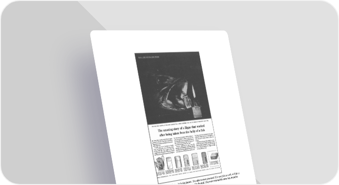 Note the editorial layout, and the story form – both plus factors. This advertisement promised ‘If it ever fails to work, we’ll fix it free.’ Every morning hundreds of old and battered Zippos arrived in the mail. They were returned the same day, in perfect working order – and no charge.