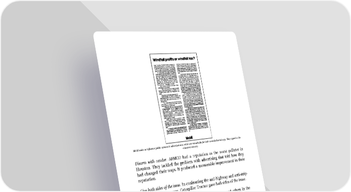 Mobil seeks to influence public opinion in advertisements which are remarkable for their no-holds-barred copy. They appeal to the educated minority. Disarm with candor. ARMCO had a reputation as the worst polluter in Houston. They tackled the problem with advertising that told how they had changed their ways. It produced a measurable improvement in their reputation. Give both sides of the issue. In confronting the anti-highway and anti-strip- mining pressure groups, Caterpillar Tractor gave both sides of the issue. Know who your target is. You can reach Congressmen and others in the Federal Government with a campaign that need not cost more than $800,000 a year, but it Won’t do you much good. Unless legislators know that you are talking to their constituents, they turn a deaf ear. As Ralph Nader is reported to have said, ‘If you are weak on the streets, you are weak.’ When Congress was considering a windfall profits tax on oil companies, several of them ran argumentative advertisements directed to Congressmen. But social and political pressures were so great, and demagoguery so rampant, that the bill was enacted. The campaign might