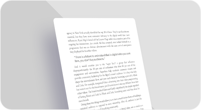 agency in New York actually identified the top 30 of them. They’re not Boardroom material, but they have more consumer intimacy in the digital world than most influencers. Ryan Higa’s launch of the Lenovo Yoga tablet was a seamless part of his ongoing fan interactions. As a result, his fans accepted, even looked forward to, a programme that was an obvious advertisement with the same sort of anticipation they displayed for his other videos. “There is a failure to understand that in digital video you seek fans, you don’t buy audiences.” And it would sensitize you to the “super fans”: a group that influences disproportionately: the 20 per cent of enthusiasts who drive 80 per cent of the engagement and conversation. Superfans help moderate comment streams and provide community leadership for the digital creator’s audience. It is they who help shape the entertainment flow, and you reach them by becoming a part of it. Rhett and Link, for example, integrated Geico advertising into their video programming, but were it not for the brand name, you’d never know it was any different from their other videos. The brand reached Rhett and Link’s superfans by the simple expedient of letting Rhett and Link be Rhett and Link. Something easier said than done for most brands. Doing these two things would allow you to have a much better chance of building a sustained audience as opposed to mere viewership. After all, audience is just the advertising world’s way of describing community. But there’s also an alternative way of looking at digital video, not so much as a community-based audience but by learning from Hollywood. It requires client courage: the courage to commit, once in a while, to one big production. It means creating stories so compelling that they command attention. But then that attention, unlike the attention of a cinema audience, is scaled by a digitally informed distribution strategy. Intimacy in Depth How intimate can you be? How deep can you go? Over the years the most thankless and frustrating presentations I have made were