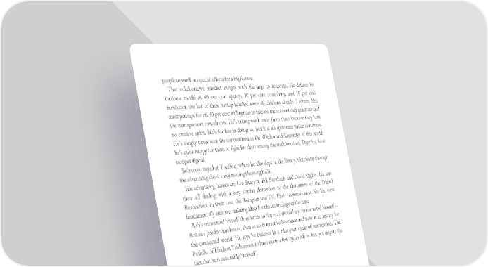 people to work on special effects for a big feature. That collaborative mindset merges with the urge to innovate. He defines his business model as 60 per cent agency, 30 per cent consulting, and 10 per cent incubator, the last of these having hatched some 40 chickens already. I admire him most perhaps for his 30 per cent willingness to take on the accountancy practices and the management consultants. He’s taking work away from them because they have no creative spirit. He’s fearless in doing so, but it is his quietness which convinces. He’s simply never seen the competition as the Wieden and Kennedys of this world: he’s quite happy for them to fight for share among the traditional set. They just have not got digital. Bob once stayed at Touffou, where he also slept in the library, thumbing through the advertising classics and reading the marginalia. His advertising heroes are Leo Burnett, Bill Bernbach and David Ogilvy. He saw them all dealing with a very similar disruption to the disruption of the Digital Revolution. In their case, the disrupter was TV. Their responses to it, like his, were fundamentally creative: realizing ideas for the technology of the time. Bob’s reinvented himself three times so far; or, I should say, reincarnated himself – first as a production house, then as an interactive boutique and now as an agency for the connected world. He says he believes in a nine-year cycle of reinvention. The Buddha of Hudson Yards seems to have quite a few cycles left in him yet, despite the fact that he is ostensibly “retired”.