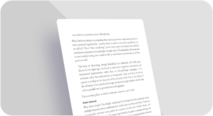 ever send me is premium notices. Bloody fools. What David was doing was proposing direct mail as part of an omni-channel tactic to meet a perennial opportunity – namely, that it is easier to cross-sell or upsell than it is to cold-sell. This is “direct marketing”, and in many ways it anticipates the world of continuous commerce in its principles, though some of the disciplines that went into it, most notably testing, have tended to take an unfortunate leave of absence. As Rory puts it so well: This form of advertising, though historically less celebrated, still holds great lessons for the digital age. It is based on continuous, responsive interactions, and incremental improvements rather than on fire-and-forget campaigns. It is stochastic rather than deterministic in its approach. And, at its best, it tries to operate according to the timescale of the consumer rather than at the behest of the advertiser. It is as much about target moments as target markets. And it aims as far as possible not to generalize but to disaggregate. There are three pillars on which continuous commerce can be built: Omni-channel What does it mean? Very simply: continuity for the brand and the consumer across multiple channels, devices and locations to enable sales any time, anywhere. There are innumerable consumer entry points to commerce (social, web, mobile, kiosks, and more), and it is proven that the more opportunities you give a consumer to buy, the more she or he will. It could be argued that all marketing communications elements should carry an opportunity to buy, be it a web banner, a kiosk, even a billboard. Here’s how to do it – and do it very well indeed. Adidas is on the front foot with omni-channel, seamlessly integrating offline and online in both directions. Moving customers offline to online, the brand’s “endless aisle” concept allows customers to browse additional stock online where not available in store. Meanwhile mobile app users get custom alerts on the launch of a new sneaker model, allowing them to check out different variations, before reserving online and collecting in store. Importantly this isn’t an adhoc approach, the company