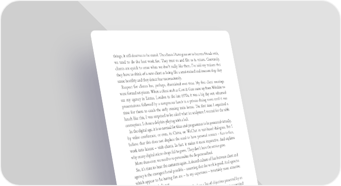 things, it still deserves to be stated. The clients I have gone on to become friends with, we tend to do the best work for. They trust us and like us in return. Conversely, clients are quick to sense when we don’t really like them. I’ve told my trainees that they have to think of a new client as being like a semi-trained and insecure dog: they sense hostility and they detect fear unconsciously. Respect for clients has, perhaps, diminished over time. My first client meetings were formal set pieces. When a client such as Cow & Gate came up from Wiltshire to see my agency in Lintas, London in the late 1970s, it was a big day out; rehearsed presentations followed by a sumptuous lunch in a private dining room until it was time for them to catch the early evening train home. The first time I organized a lunch like this, I was surprised to be asked what ice sculpture I wanted for the table centrepiece. I chose a dolphin playing with a ball. In the digital age, it is so normal for ideas and programmes to be presented virtually, by video conference, or even, in China, on WeChat in text-based dialogues. But I believe that this does not displace the need to have personal contact – face-to-face, work into leisure – with clients. In fact, it makes it more imperative. And explains why many digital micro-shops fail to grow. They don’t have the service gene. More than ever, we need to re-personalize the de-personalized. So, it’s time to hear the castanets again. A shared culture of fun between client and agency is the strongest bond possible – assuming that the work is good. And agencies which appear to be having fun are – in my experience – invariably more attractive than those which do not. Now, sometimes I see the words “have fun” on a list of objectives presented by an office head. I know there is no fun to be had there. At least, I suppose, it is recognized as a need. But fun does not come organized from on high; it bubbles up from below. Like the flamenco, there is something spontaneous, zestful and uncontrollable about it. Olé! Así se baila! (That’s how you dance!).