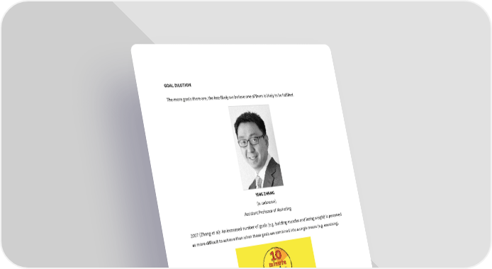 GOAL DILUTION The more goals there are, the less likely we believe one of them is likely to be fulfilled. YING ZHANG (b. unknown) Assistant Professor of Marketing 2007 (Zhang et al): An increased number of goals (e.g. building muscles and losing weight) is perceived as more difficult to achieve than when those goals are combined into a single means (e.g. exercising). Ogilvy Change and Public Health England: The 10 Minute Shake-Up campaign. Made exercise seem more achievable by focusing on a simple burst of activity twice a day. My “12 Bright Secrets” are a set of individuals who have each advanced an important area within neuroscience or behavioural economics – from “habit formation” to “goal dilution”. Some of them are names you may have heard before, others are less well known but influential in their own right. As you’ll see, the principle developed by each has