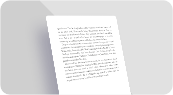 specific cause. Then he thought of her and her “very small” foundation. Jeanette told me she texted back, “You must be joking,” but eventually she did it. Then she nominated her close friends in Pelham. They nominated their friends, who did the same. And so on – a ripple effect from a few local townspeople, to the whole community, to neighbouring towns, and finally, a tidal wave on Facebook. The giant of social networks isn’t a nebulous universe of strangers, but a web of communities where compelling content and ideas can quickly become a pandemic. Within weeks, Facebook’s CEO, Mark Zuckerberg, had taken the ALS Ice Bucket Challenge (nominated by New Jersey Governor Chris Christie), alongside other celebrities such as Justin Timberlake, David Beckham and Justin Bieber, whose video gained over one million likes alone. Likes turned into donations. In just one month, the ALS Association in the US received almost $100 million, dwarfing the $2.7m donated over the same period the year before. Awareness soared as over 2 million videos and 4.5 million Twitter mentions saturated social and traditional media. Searches for information about ALS increased dramatically; the ALS Wikipedia page received 2.7 million views that August, compared to only 1.6 million in the preceding 12 months.