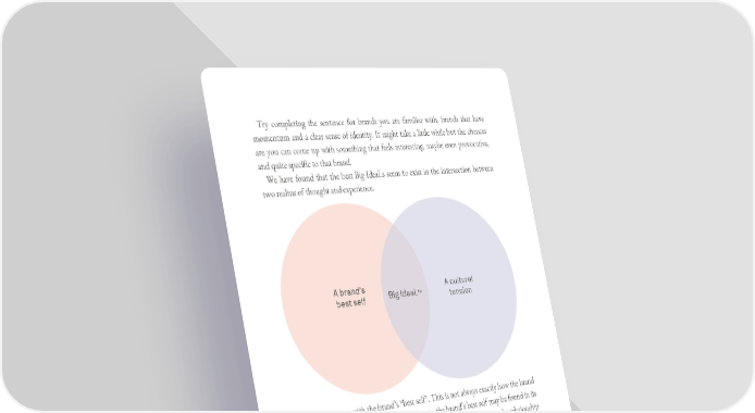 Try completing the sentence for brands you are familiar with, brands that have momentum and a clear sense of identity. It might take a little while but the chances are you can come up with something that feels interesting, maybe even provocative, and quite specific to that brand. We have found that the best Big IdeaLs seem to exist in the intersection between two realms of thought and experience. They connect with the brand’s “best self”. This is not always exactly how the brand is right now, but how it is as its best. Clues to the brand’s best self may be found in its heritage – those moments when the brand was most successful, or in the relationship that the brand’s most loyal users have with it, or maybe in its visual identity. Bear in mind, however, that brands only exist in context: if the brand’s greatest hour was in 1964, we need to reinterpret what made it great back then for a contemporary context. Big Ideals need to connect not just to a list of brand benefits, but to the little pieces of magic that comprise that brand’s current or potential claim to greatness. Big Ideals also connect to a cultural tension. This is where we claim culture. “Markets are conversations”, according to The Cluetrain Manifesto and leading brands need to be interesting conversationalists. They are worth listening to when