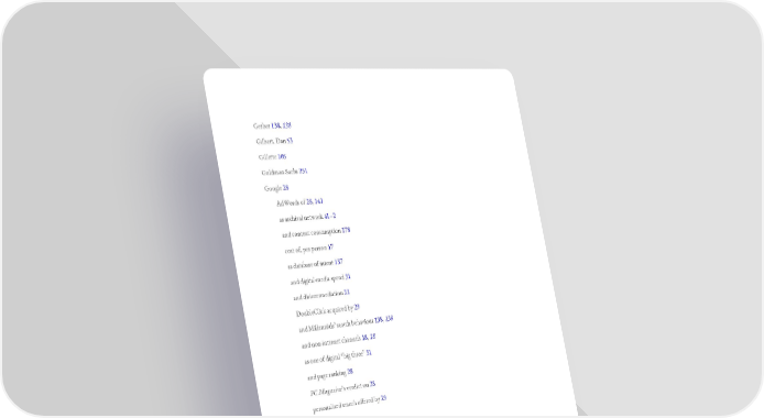 Gerber 138, 138 Gilbert, Dan 53 Gillette 105 Goldman Sachs 251 Google 28 AdWords of 28, 141 as archival network 41–2 and content consumption 178 cost of, per person 17 as database of intent 137 and digital-media spend 31 and disintermediation 21 DoubleClick acquired by 29 and Millennials’ search behaviour 138, 138 and non-internet channels 18, 18 as one of digital “big three” 31 and page ranking 28 PC Magazine’s verdict on 28 personalized search offered by 29 revenue of 29 and same-sex marriage 205, 206 and underserved communities 180 and video 40–1, 73 Google Chrome: and ad-blocking software 29 and Arcade Fire video 88, 89 Google Instant 29 Google Now 176, 179 Google Quality Score 145