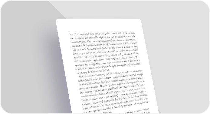 here. Bob has directed them artfully into perfect order. Outside, if you feel calm, there’s a reason. Bob chose techno lighting: it is fully programmable to match the circadian rhythms. If you want to configure a conference room to cerulean blue, you can. And as the days become longer the light becomes warmer. A St Bart’s sunset? You can have it. And in the “waffle” ceiling the light is diverted so it does not shine down on you and tire you, while those same waffles are clad in noise-cancellation materials. There’s a space reserved for gyrokinesis and gyrotonics. A calming environment like this might seem excessively cushy, but of course, it’s cunning. “It’s a systematic way of supporting people to get to the most important thing which is retention” – retention in a world where the digital duopoly of Google and Facebook are hiring by the thousands in New York. With this connected technology, you can collaborate internally – or with London or Shanghai. The money goes into the screens, not the walls, which are blank – except for what Bob has collected. It’s a luxury to be able to collect and have enough space to display what you collect. Not many people could place their motorcycle collection in their workspace: but here are the prized BMW’s, including the pride of the pack, a recently reassembled Rizoma of 1973, together with a veritable stable of racing Ducatis. A small museum of past technologies – from the typewriter to the Mac – would do credit to any design museum. And then there’s the art. Bob has one of the largest collection of L’Art Brut – outsider art, self-taught, vibrant pieces, often hung as a series, splashes of anarchism in this orderly environment. Of course, there’s a curatorial system, mobile enabled. Bob’s frustration with architects is that they see technology as structure. He sees it as the foundation of a collaborative environment. He can’t understand why R/GA’s architect, Norman Foster, wouldn’t see his famous Comcast Building in Philadelphia as a digital landscape as well; or, for that matter, why Frank Gehry doesn’t see the same opportunity in his Facebook building. Bob’s space is designed to make people enjoy working together. And not to feel big. He once read a famous Harvard Business Review article, which said that, after the size of 150 people, every creative organization loses something. Here, the space helps it fight back. Bob’s “collaboration gene” comes from his time in film production. It is intensely collaborative – much more so than traditional advertising. It might take 1,500–2,000