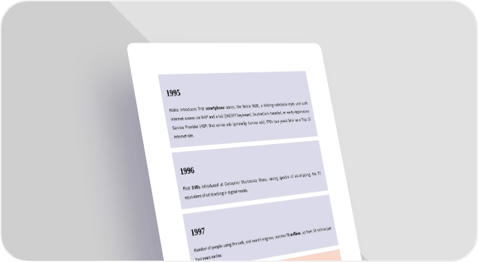 1995 Nokia introduces first smartphone series, the Nokia 9000, a folding-notebook-style unit with internet access via WAP and a full QWERTY keyboard. DoubleClick founded, an early Application Service Provider (ASP) that serves ads (primarily banner ads). IPOs two years later as a Top 10 internet site. 1996 First DVRs introduced at Consumer Electronics Show, raising spectre of ad-skipping, the TV equivalent of ad blocking in digital media. 1997 Number of people using the web, and search engines, reaches 70 million, up from 16 million just two years earlier. 1998 TV ad revenue hits $8.3 billion. Google and MSN search engines launch. Google develops PageRank, measuring quality and strength of inbound links to determine relative value of sites. GoTo.com launches bidding for higher placement in search results.