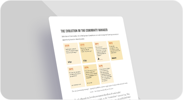THE EVOLUTION OF THE COMMUNITY MANAGER Definition of Community: not a fixed group of people you own and manage but flickering moments of opportunity based on shared passion The role of community manager – equal parts publisher, customer support agent, brand guardian and social media maven – has changed considerably over the years. People often ask me, how do you measure the effects of social media? In the past it was difficult to answer, as the “intermediate” measures (e.g. likes, shares, impressions) were just that – intermediate. Of course, one gold-plated ideal would be net promoter score – quantifying the value of an individual’s recommendations to someone else to try a brand. AT&T developed some interesting work in this area; most notably for their “At Summer Break” program some years back. But systems like these rely on very heavy-duty econometric models, in this case created by management consultants. Unfortunately, they are just not affordable day to day; and as a result have not had wide-scale adoption. But, social CRM does provide an answer. As long as there is a URL, and a tracking and attribution system to follow people around the internet, it is now possible to