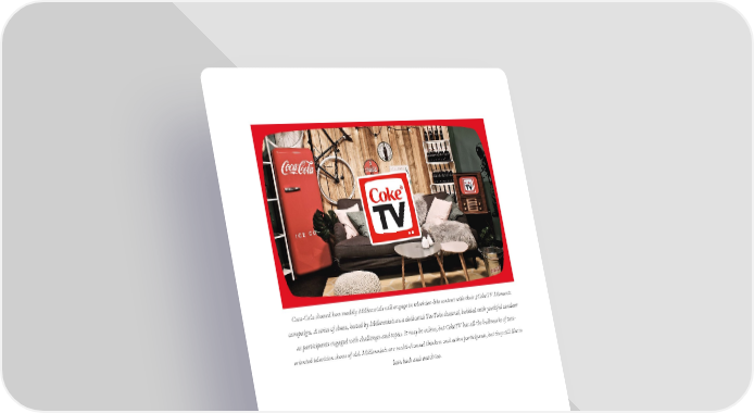 Coca-Cola showed how readily Millennials will engage in television-like content with their #CokeTV Moments campaign. A series of shows, hosted by Millennials on a dedicated YouTube channel, bubbled with youthful candour as participants engaged with challenges and topics. It may be online, but CokeTV has all the hallmarks of teen- oriented television shows of old. Millennials are multi-channel thinkers and active participants, but they still like to lean back and watch too.