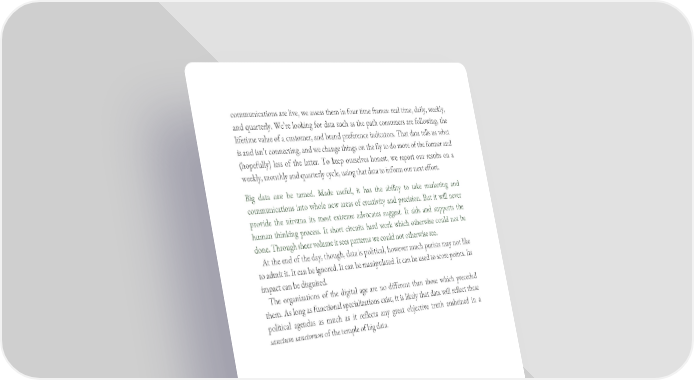 communications are live, we assess them in four time frames: real time, daily, weekly, and quarterly. We’re looking for data such as the path consumers are following, the lifetime value of a customer, and brand preference indicators. That data tells us what is and isn’t connecting, and we change things on the fly to do more of the former and (hopefully) less of the latter. To keep ourselves honest, we report our results on a weekly, monthly and quarterly cycle, using that data to inform our next effort. Big data can be tamed. Made useful, it has the ability to take marketing and communications into whole new areas of creativity and precision. But it will never provide the nirvana its most extreme advocates suggest. It aids and supports the human thinking process. It short circuits hard work which otherwise could not be done. Through sheer volume it sees patterns we could not otherwise see. At the end of the day, though, data is political, however much purists may not like to admit it. It can be ignored. It can be manipulated. It can be used to score points. Its impact can be disguised. The organizations of the digital age are no different than those which preceded them. As long as functional specializations exist, it is likely that data will reflect these political agendas as much as it reflects any great objective truth enshrined in a sanctum sanctorum of the temple of big data.