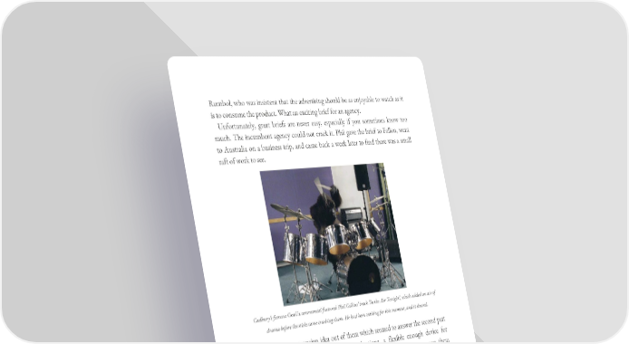 Rumbol, who was insistent that the advertising should be as enjoyable to watch as it is to consume the product. What an exciting brief for an agency. Unfortunately, great briefs are never easy, especially if you sometimes know too much. The incumbent agency could not crack it. Phil gave the brief to Fallon, went to Australia on a business trip, and came back a week later to find there was a small raft of work to see. Cadbury’s famous Gorilla commercial featured Phil Collins’ track ‘In the Air Tonight’, which added an air of drama before the sticks came crashing down. He had been waiting for this moment, and it showed. There was one campaign idea out of them which seemed to answer the second part of the brief: Glass and a Half Full productions, a flexible enough device for understanding milk content, and with that were four executions, among them Gorilla. It was the very antithesis of linear, persuasive advertising, and the reactions up the line in Cadbury were of bemusement not amusement. Phil recalls it was something like: “Let’s get this right: You want to make an advert two times longer than a normal ad. It’s got no chocolate in it, and it’s got no message. Are you mad?”
