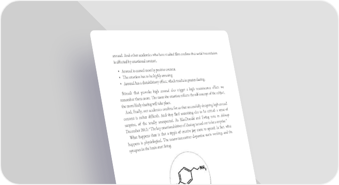 arousal. And other academics who have studied film confirm that social transmission is affected by emotional content. • Arousal is caused most by positive content. • The emotion has to be highly arousing. • Arousal has a disinhibitory effect, which results in greater sharing. Stimuli that provoke high arousal also trigger a high reminiscence effect: we remember them more. The more the emotion reflects the self-concept of the subject, the more likely sharing will take place. And, finally, our academics confirm for us that successfully designing high-arousal content is rather difficult. And they find something else to be critical: a sense of surprise, of the totally unexpected. As MacDonald and Ewing note in Admap December 2012: “The key emotional driver of sharing turned out to be a surprise.” What happens then is that a ripple of creative joy starts to spread. In fact, what happens is physiological. The neuro-transmitter dopamine starts working; and the synapses in the brain start firing. This is it – dopamine: the creative molecule. Food, sex, exercise – and even advertising – can trigger a release of dopamine from nerve cells (neurons) to other parts of the brain through the tiny space (synapse) in between. A spike of dopamine acts as a “reward”, signalling pleasure, motivation, and most important of all, salience – alerting the brain to pay attention to whatever stimulus activated it. So the key to understanding the internet is not technological; it’s chemical.