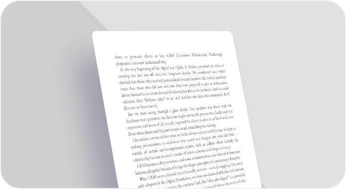 those to persuade clients to buy CRM (Customer Relationship Marketing) programs. I can now understand why. At the very beginning of the digital era, Ogilvy & Mather perceived the value of creating not just one-off sales but long-term loyalty. We conducted tests which showed that those who received personalized communications did, indeed, purchase more than those who did not, and that they were prepared to give us information about themselves in return for useful information about our products. And we could calculate their “lifetime value” to us, and translate our data into measurable ROI (Return on Investment). But we were seeing through a glass darkly. The medium was direct mail; the databases were primitive; the data was single source; the process was clunky and very expensive; and worst of all, it really required the clients to do a lot of hard work, too. Even when direct mail by post became email, something was missing. Like zealots convinced that what we believed was incontrovertibly true, we kept on making presentations to audiences who could not disagree but who did little – outside of certain easy-to-implement sectors, such as airlines where initially the relationship became as much a matter of points schemes as of deeper intimacy. CRM became a dirty acronym: and some companies have now banned it from their lexicons altogether because it brings the deeper principles into unnecessary disrepute. What CRM never achieved was to be really intimate – or truly engaging. Like many early adopters in the Digital Revolution, we were too obsessed with the tools and not enough with the experience the customer had. But “data plus digital” is a powerful combination which allows us to put the customer’s point of view at the centre of what we do, and not just the brand’s. Hi! I’m DAVE. They called me that because I suppose they wanted me to sound like a hip grandson of the great David. I’m not sure he’d like some of the words I stand for: Data-inspired Always-on Valuable Experience