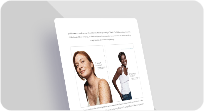 global commerce, can be resolved through humankind’s unique ability to “think”. This billboard dispays icons from IBM's Smarter Planet campaign, in which intelligent solutions contribute to smarter cities. And it shows how design can express a powerful idea in the digital age. Dove re-establishes the relationship between women, their inner selves and their outward representation in media and advertising, exposing the rhetoric of the cosmetics industry. The poster’s message? You don’t have to conform to a stereotype to be beautiful.